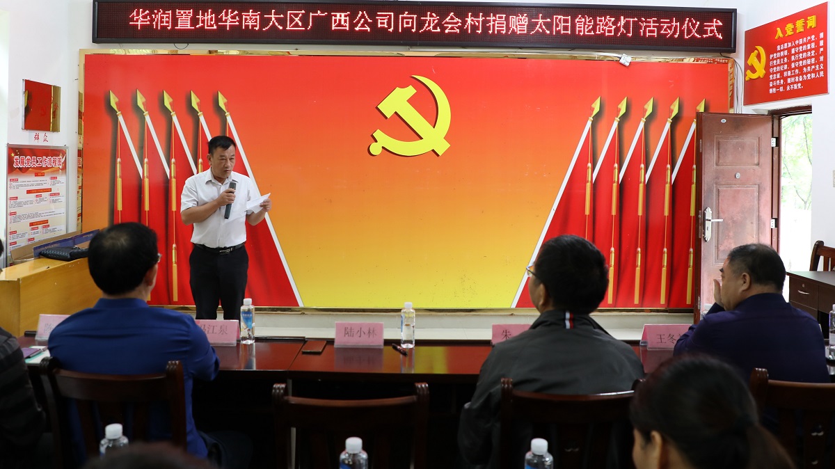 10月14日,南寧市自然資源局?jǐn)y愛心企業(yè)華潤置地華南大區(qū)廣西公司到我院結(jié)對幫扶貧困村布泉鄉(xiāng)龍會(huì)村開展扶貧捐贈(zèng)活動(dòng),向龍會(huì)村捐贈(zèng)一批價(jià)值20萬元的太陽能路燈,助力鄉(xiāng)村振興。