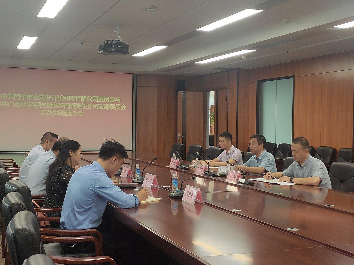 為進一步強化黨建引領,深入貫徹落實習近平總書記在慶祝中國共產(chǎn)黨成立100周年大會上的講話精神,切實加強國有企業(yè)黨組織與民營企業(yè)黨組織的雙方合作交流,鞏固共建質(zhì)量及服務效能,7月15日,廣西朋宇組物業(yè)服務有限責任公司黨支部書記肖建光一行4人受邀蒞臨我公司,與我公司黨委委員開展結(jié)對共建座談交流會。